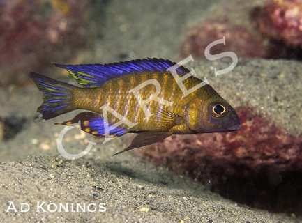 A cichlid endemic to Lake Malawi, Aulonocara ethelwynnae is found in rocky areas with a sand substrate where it feeds on bottom-dwelling invertebrates.