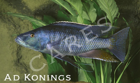 A female mouthbrooder cichlid endemic to Lake Malawi and the upper Shire River, Champsochromis spilorhynchus is found mainly over sandy and muddy bottoms near vegetation in shallow waters until fully grown when it is observed in deeper plant-free waters. A piscivore, its prey often consists of juvenile Utaka.