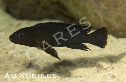 A cichlid endemic to Lake Malawi, Chindongo ater is found in rocky habitats where it feeds on phytoplankoton from the surface of the rocks.