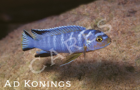 A cichlid endemic to Lake Malawi, Chindongo cyaneus is found near small rocks where it feeds on algae and plankton.