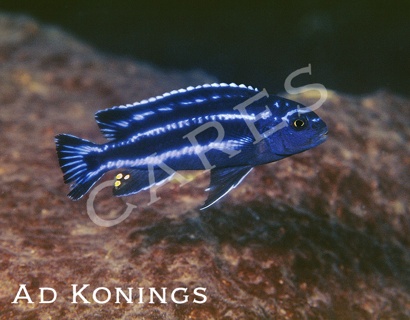 A cichlid native to Lake Malawi found over small to medium rocks. It feeds on zooplankton and small bottom-dwelling invertebrates.
